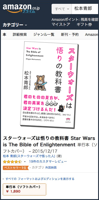 2015年に人間の本質を描いたジョージ・ルーカスの深意をくむ日本の第一人者として、書籍『スターウォーズは悟りの教科書』を出版。